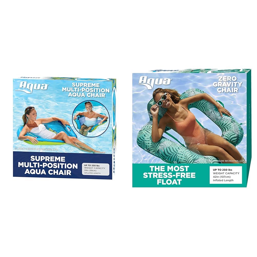 The Aqua Deluxe Supreme Hex Pool Chair Lounge and Aqua Zero Gravity Pool Chair Float bundle offers a luxurious and relaxing floating experience. The Aqua Deluxe Supreme Hex Pool Chair Lounge provides ultra-comfortable contoured support with its unique hexagonal design. Its air mesh fabric flexes with your body in two adjustable reclining positions – lounge mode or upright chair mode. Weighing up to 250 pounds, adults can relax on this 38″ x 39″ wire-free pool lounger with carry handles for portability. Complementing the lounge chair, the Aqua Zero Gravity Pool Chair Float features a zero-gravity design that allows you to achieve a feeling of weightless comfort. Fully adjustable for multiple body sizes, you can sit high or low in the water supported by the float’s soft, cool arm rests and leg bolster. Easy to inflate and compact to store at 42″ x 40″, this wire-free pool lounger also has a 250 pound weight capacity for ages 15 and up. With supportive contouring and adjustable zero-gravity relaxation, this pool chair bundle keeps you comfortably suspended for the ultimate summer floating experience.