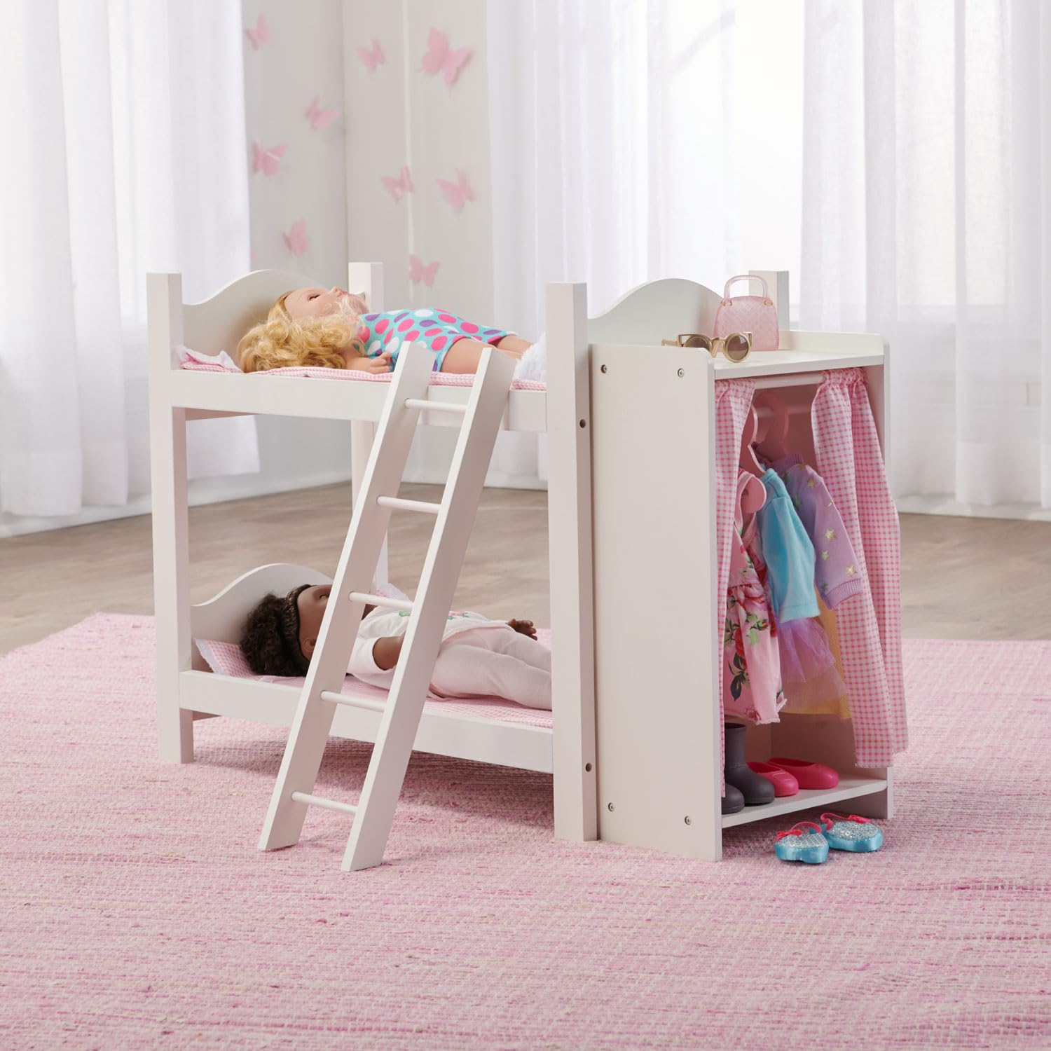 Badger Basket Doll Bunk Bed with Armoire for 18 to 22-Inch Dolls – Includes Bedding, Ladder, and Storage – Perfect for Imaginative Play