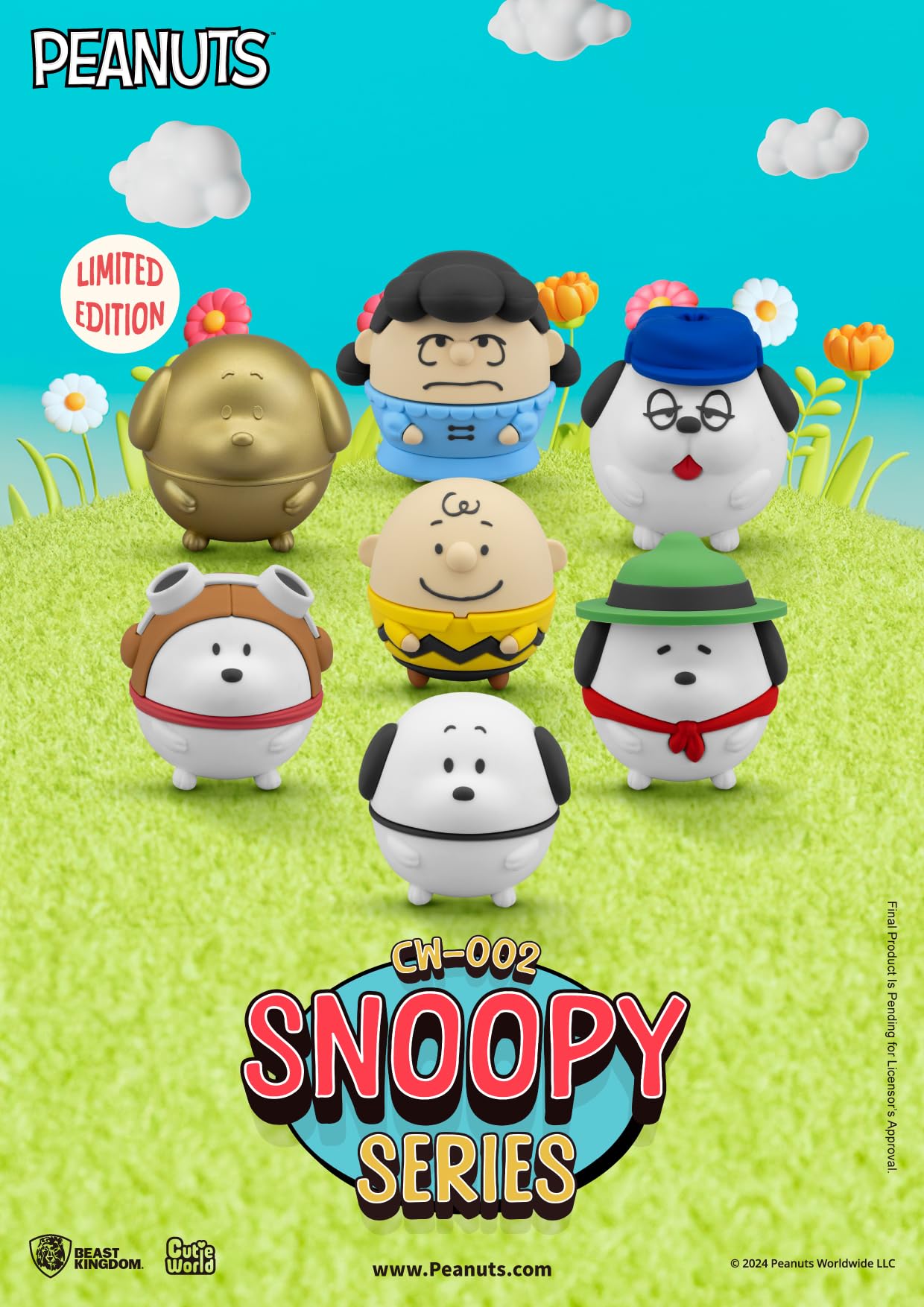 From Beast Kingdom NA. Beast Kingdom’s “Cutie World” series brings us the ultimate comfort collection—Peanuts as cute, round Snoopy figures! With their chubby shape and soft texture, these adorable Snoopys are here to brighten your day. The series includes 6+1 surprise designs: classic black-and-white Snoopy, Pilot Snoopy, Scout Snoopy, lazy Olaf, cheeky Lucy, and, of course, his buddy Charlie Brown! Perfect for your desk or shelf, they’re cute anywhere. Buy the whole set for a chance to get the rare “Golden Snoopy” with a shiny matte finish! Start collecting Snoopy and friends to make your own happy, round world!