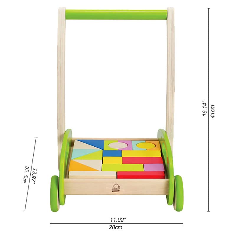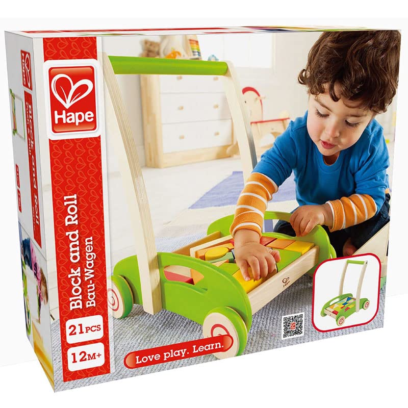 Hape Block and Roll Cart Toddler Wooden Push and Pull Toy, Multicolored (E0371B)