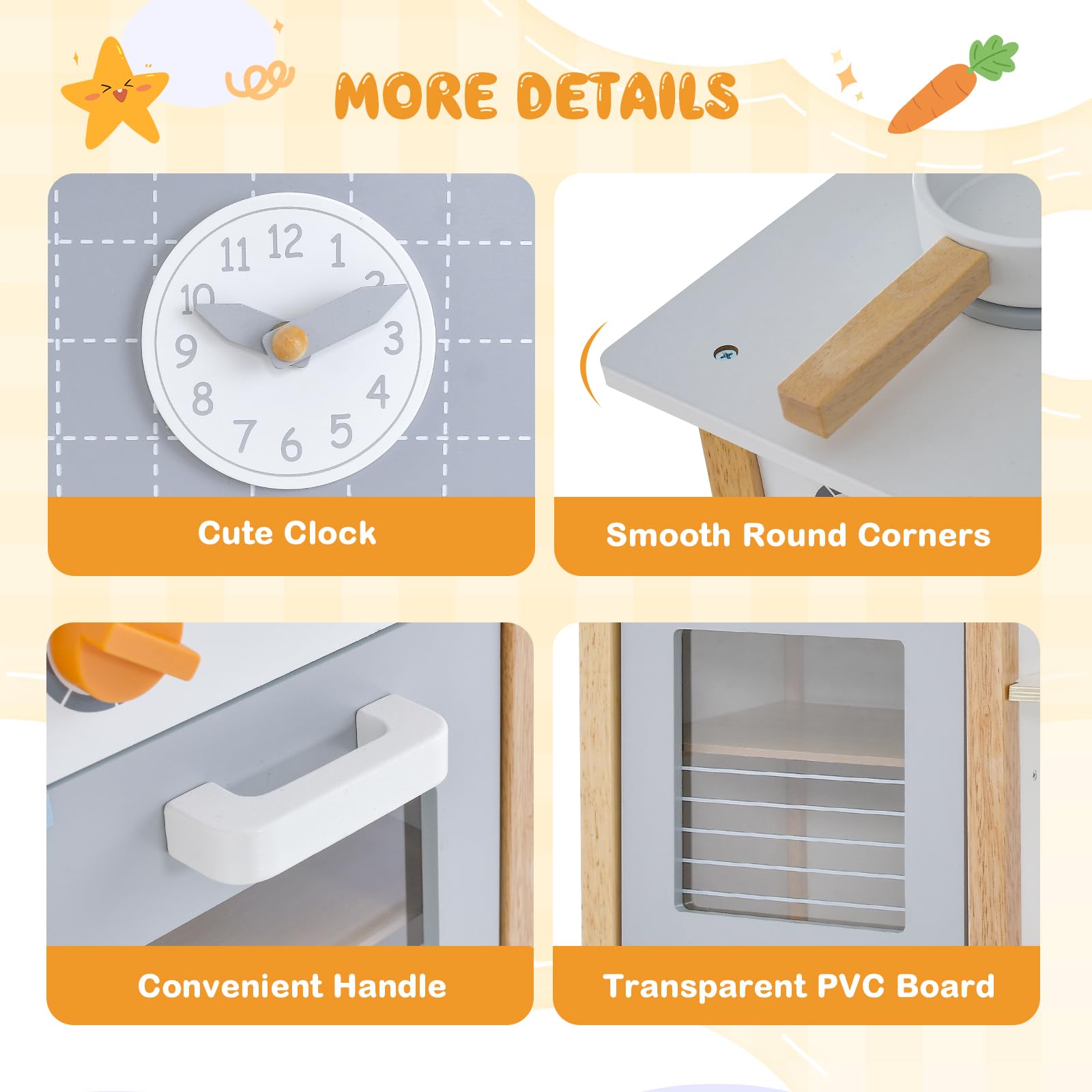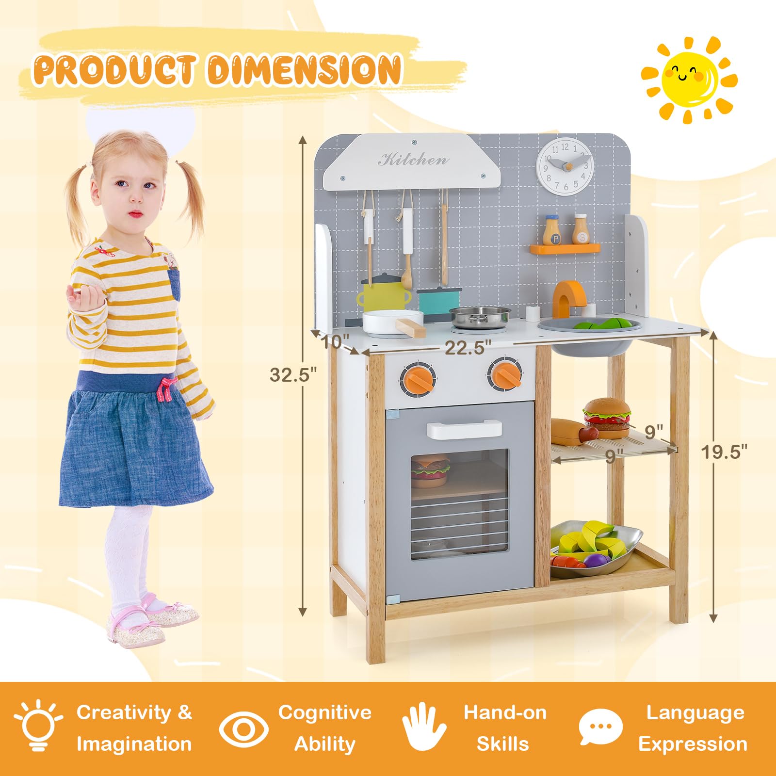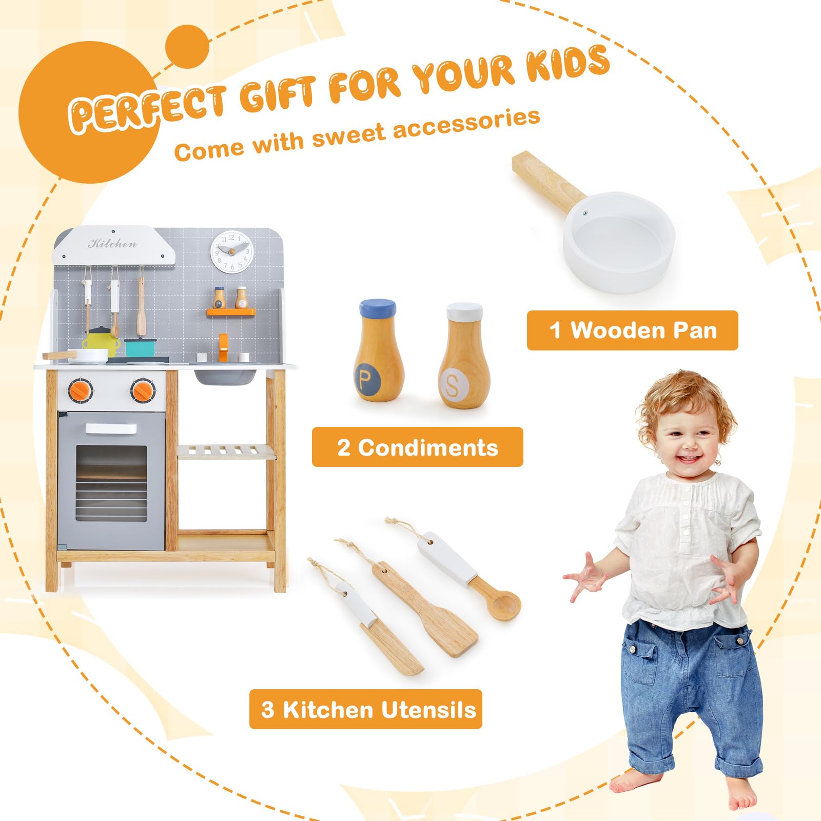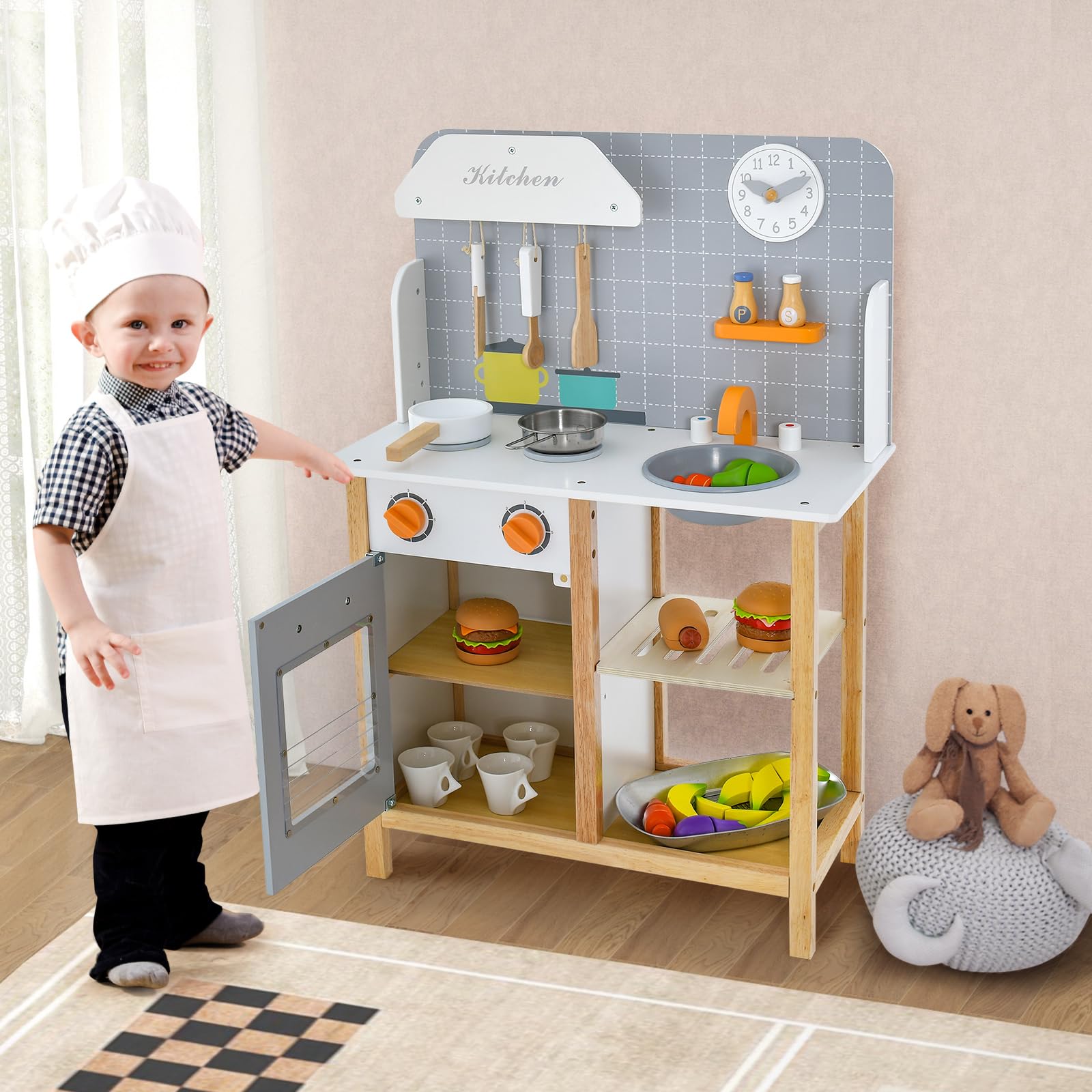 HONEY JOY Kids Kitchen Playset, Toddler Wooden Play Kitchen Set w/Sink, Stove & Oven, Cooking Accessories, Large Storage Cabinet, Little Chef Pretend Play Toy Kitchen Set, Gift for Boys Girls, Gray