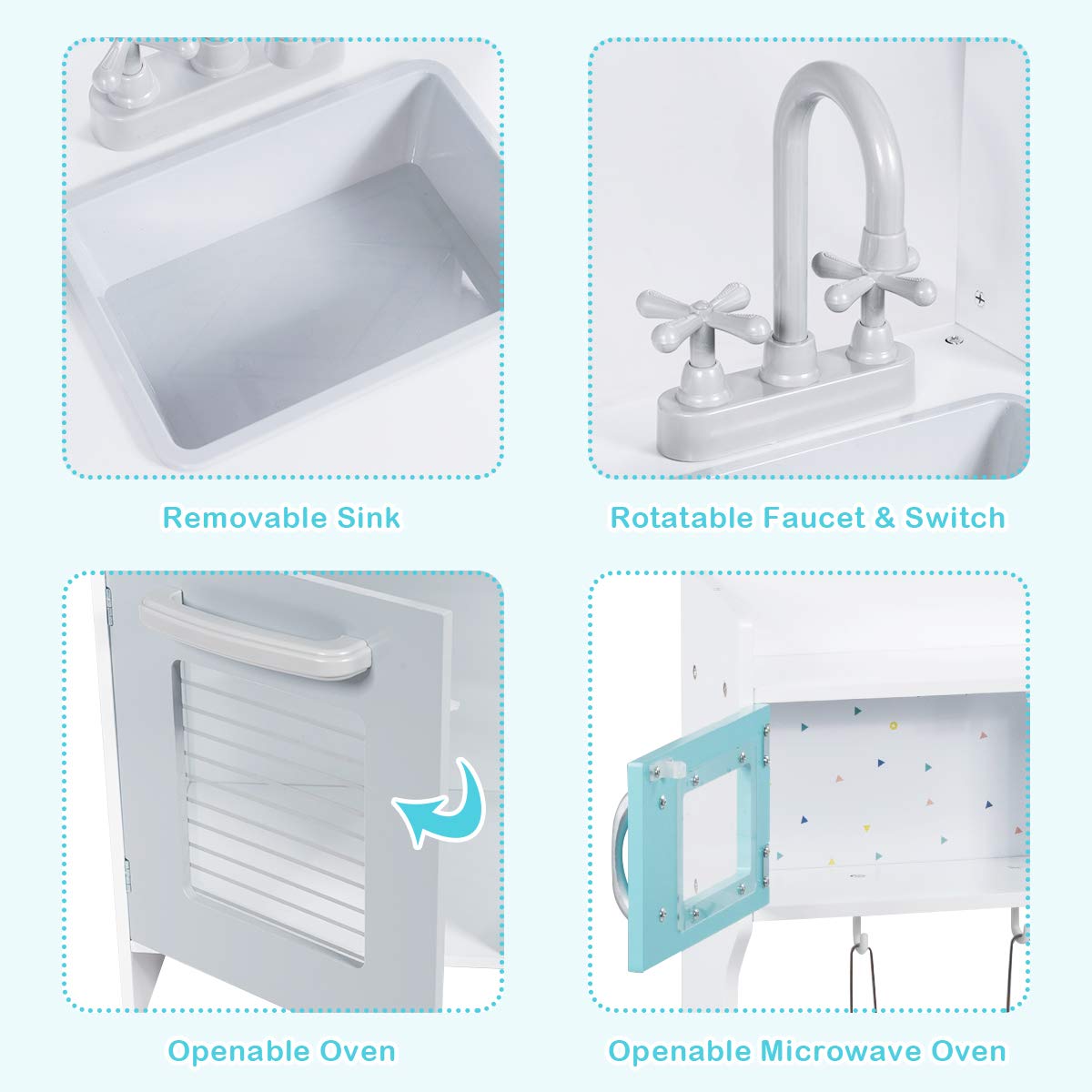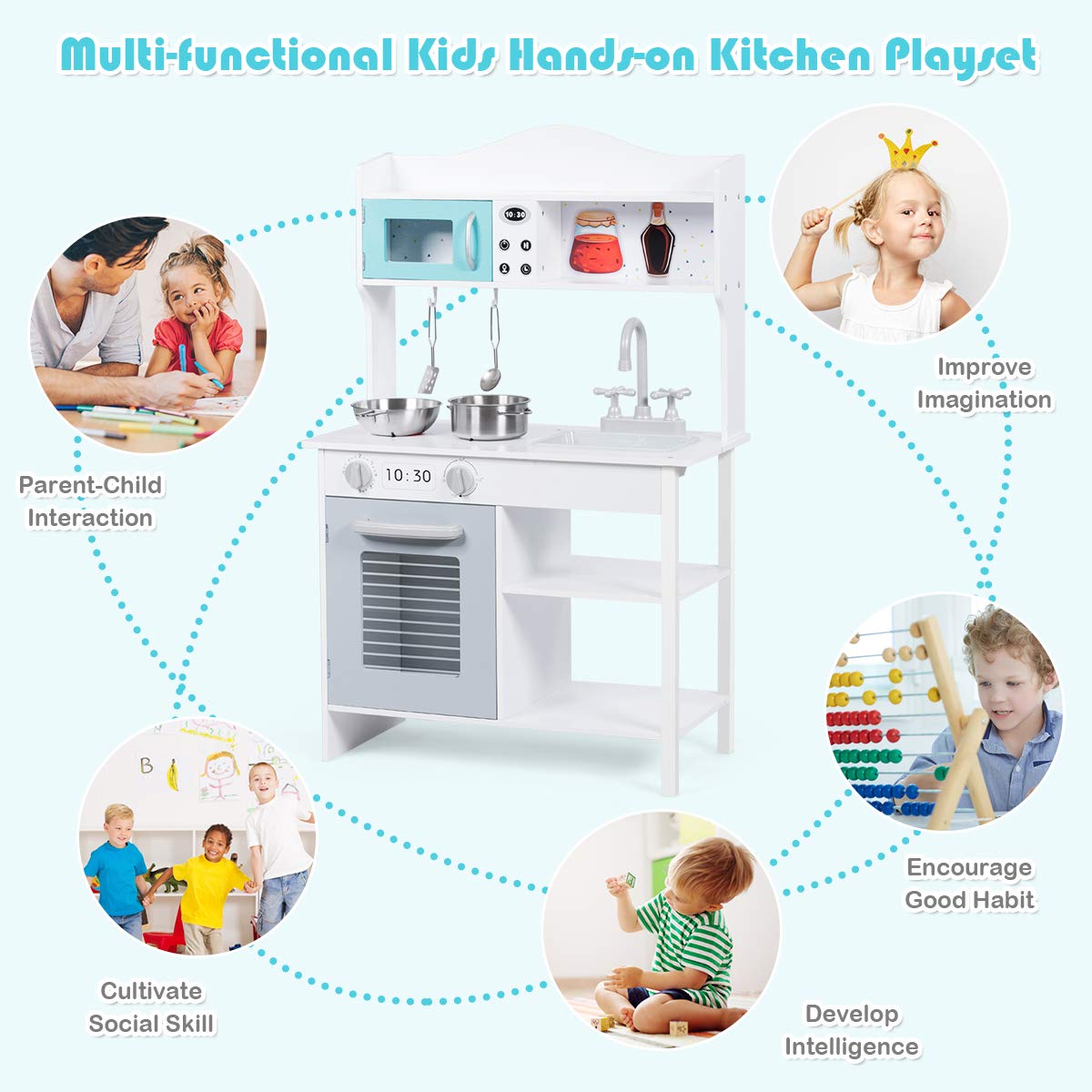 HONEY JOY Kids Kitchen Playset, Toddlers Wooden Play Kitchen Set w/Microwave, Sink, Stove & Oven, Cookware Utensils, Large Storage Shelf, Little Chef Pretend Play Toy Kitchen Set for Boy Girl Age 3+