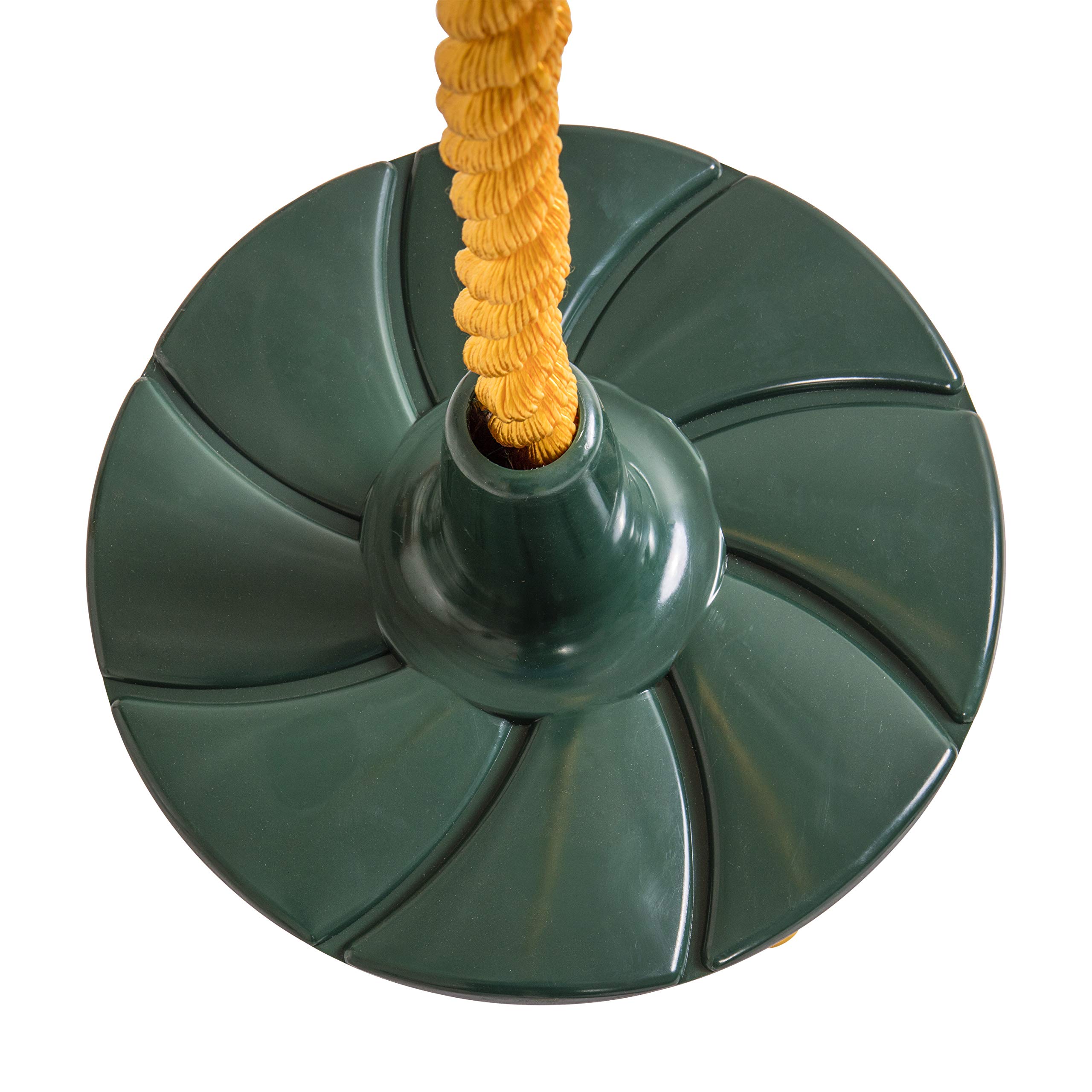 Designed for supreme portability, the Jack and June Green Playset Rope and Disc Swing is the perfect addition to any family Swingset. Made from highly durable polyethylene plastic and braided polyester, the Disc Swing is safe enough for children but strong enough for adults and can be easily hung from a tree branch or beam and goes well with any playset.