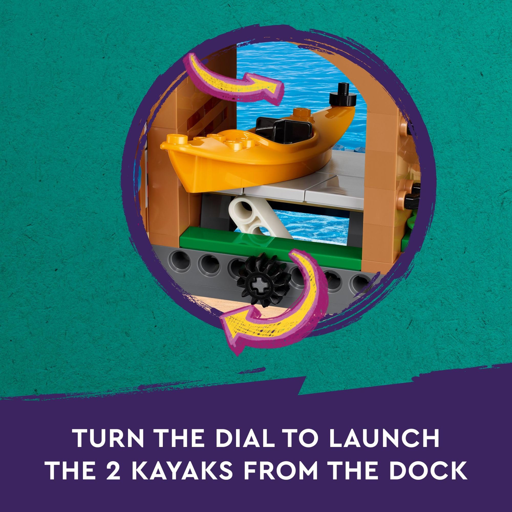 This building toy set makes a great birthday gift idea for kids ages 7 and up who love pretend play and outdoor toy adventures. Girls and boys can create their own friendship stories as they explore the LEGO Friends Adventure Camp Water Sports (42626) toy and try out all the different activities: from kayaking, fishing and raft building to painting and skipping stones. The set comes with 3 LEGO Friends mini dolls, a bear figure and lots of water sports accessories. Kids can act out the story, preparing the characters with their helmets, life vests and oars, then turning the dial to launch the 2 kayaks from the dock. There’s also a neat function that lets kids skip stones from the dock. This LEGO Friends set is packed with accessories for endless storytelling possibilities. Inside the adventure camp there’s equipment to rent, a fridge with snacks, a shower, a first aid kit, trophies and more. After a fun-filled day, the friends can relax in the hangout zone or enjoy a game of table tennis. Contains 628 pieces.