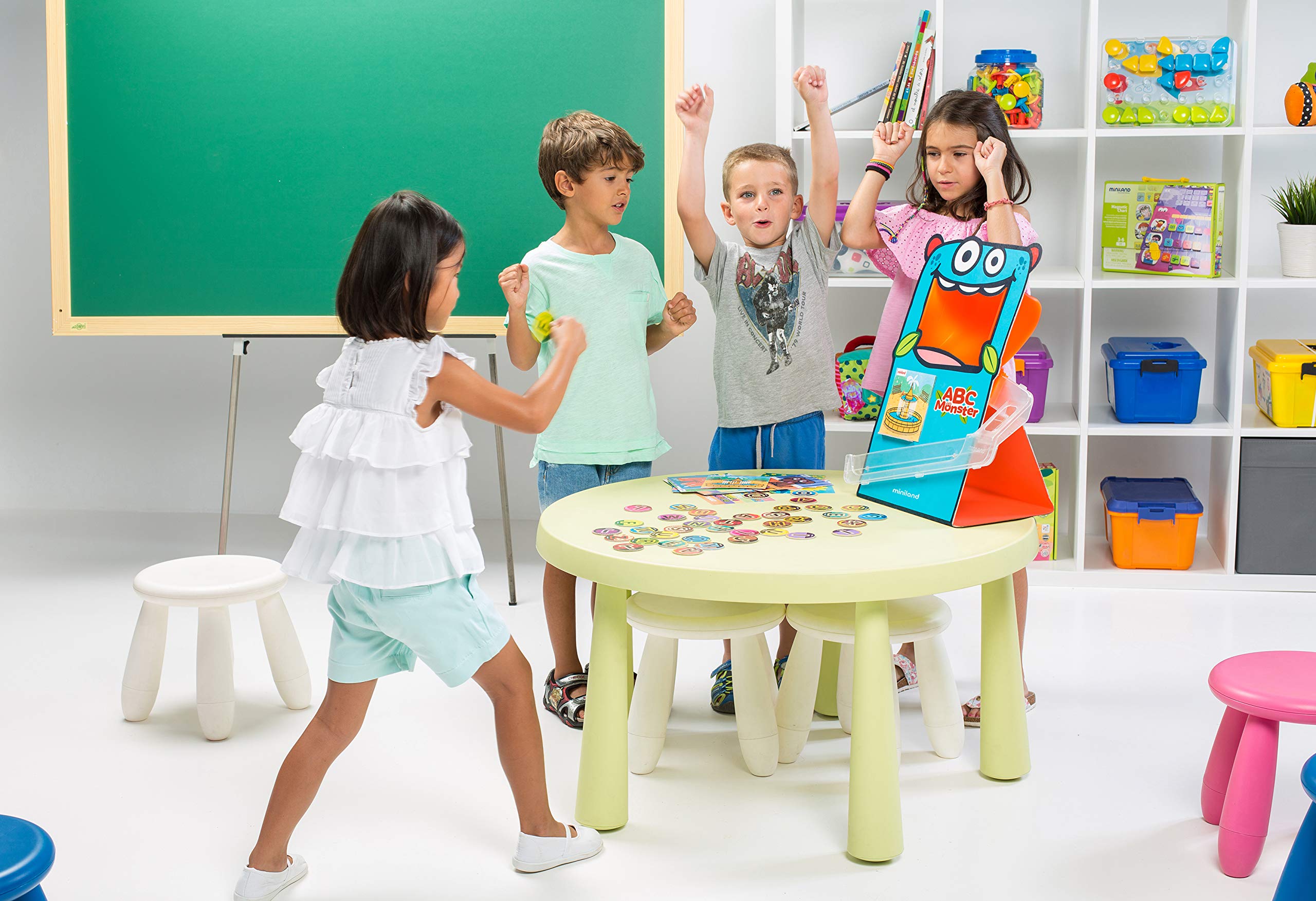Point, throw and form words! ABC monster from Miniland is a fun game where you feed the monster with letters. The discs are letters that, once inside the mouth, slide through a channel and are placed in an orderly fashion to form the desired words. This is an active game with various game modes, for learning to read and write. Includes 1 monster, 48 discs of letters, 30 game cards, 1 letter storage bag and 1 teaching guide. Suitable for children 3 to 7 years. Miniland educational, a leading toy manufacturing Company with production facilities in onil, Spain, is known worldwide for safe, high-quality educational toys. A great deal of thought and research goes into design and production of Miniland toys, but we never forget the importance of play! manufactured in Spain, according to strict European Union safety guidelines.