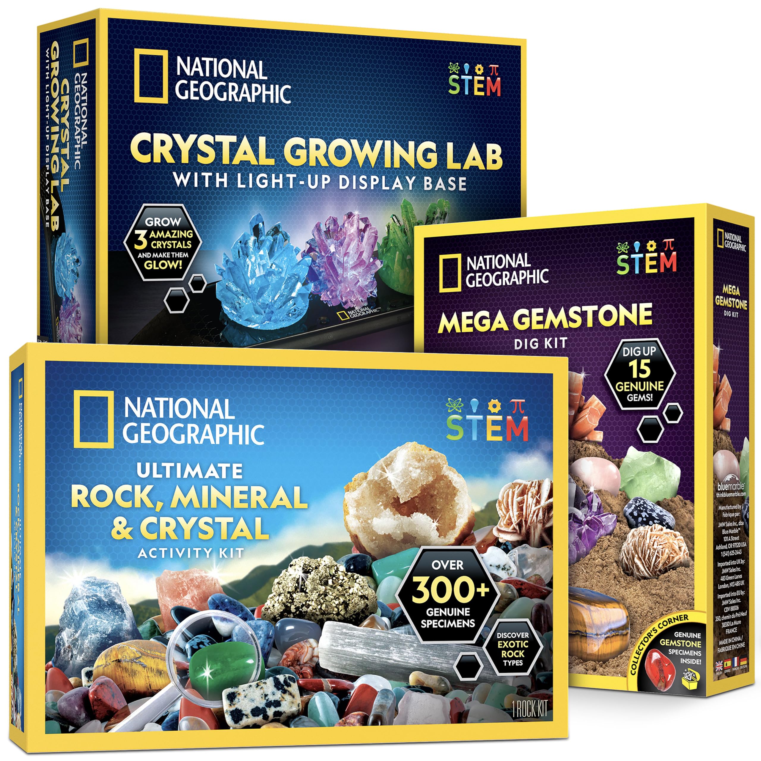NATIONAL GEOGRAPHIC Geology Bundle – Including Rock Collection Box for Kids, Crystal Growing Kit, and Gemstone Dig Kit, Real Gemstones and Crystals, Science Kit for Boys and Girls (Amazon Exclusive)