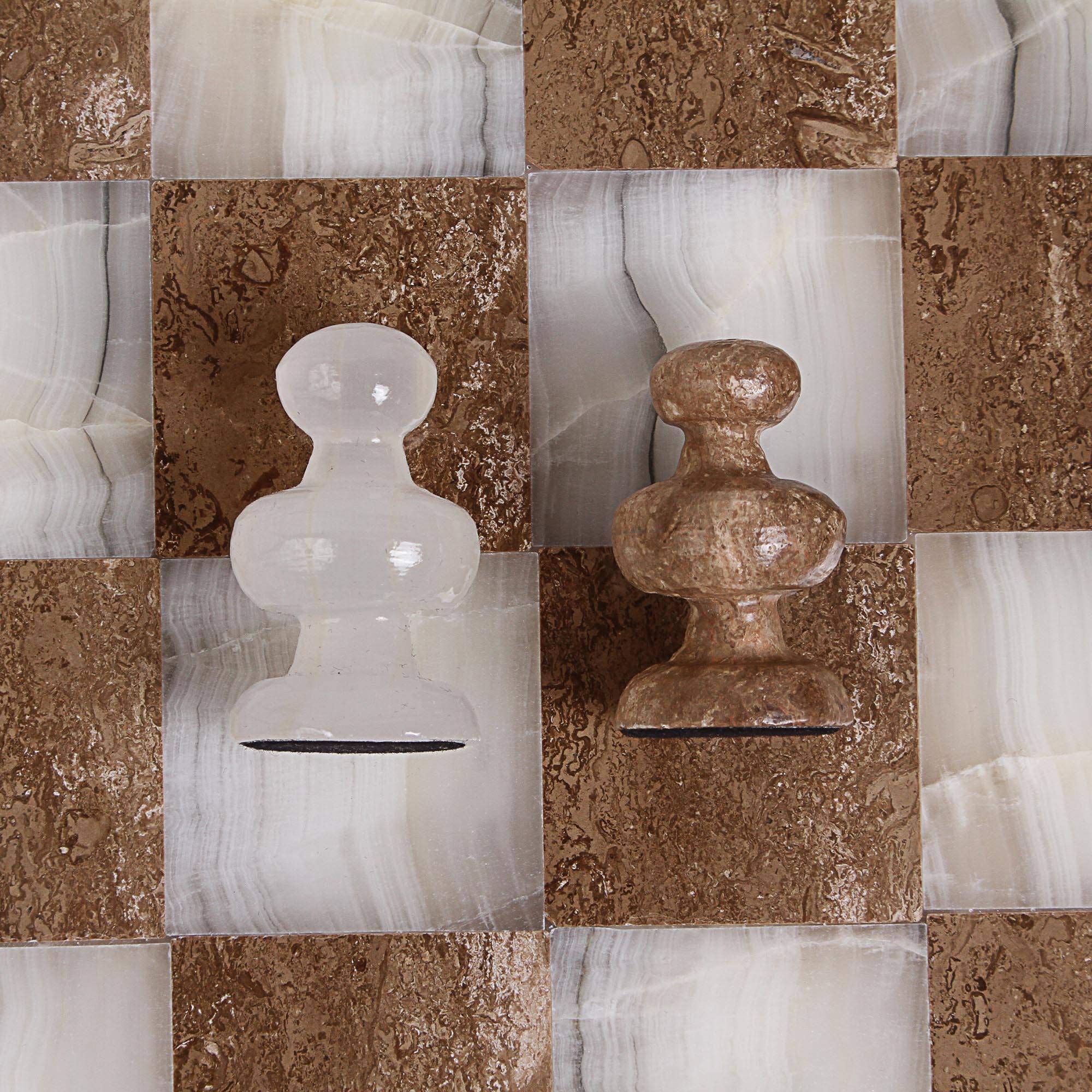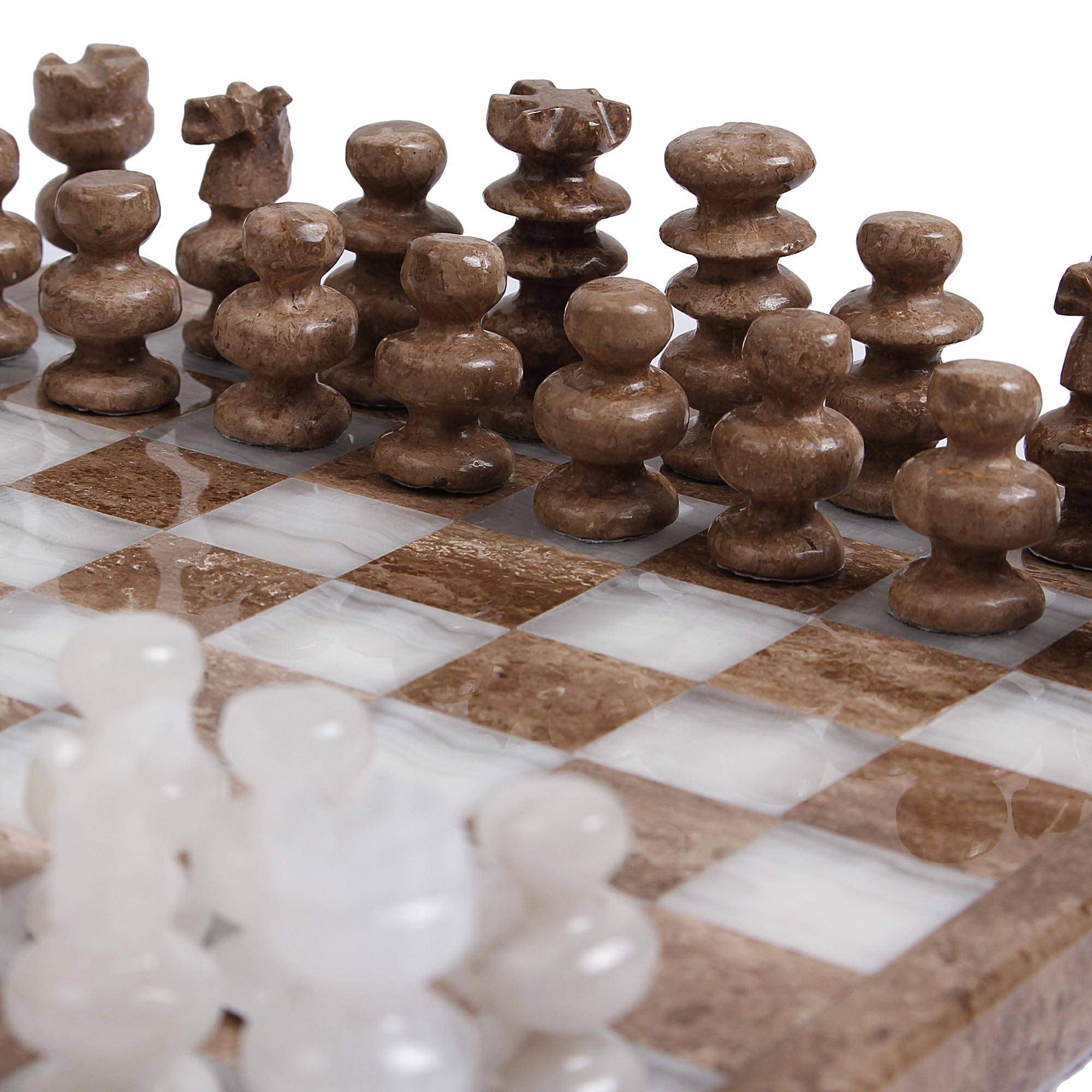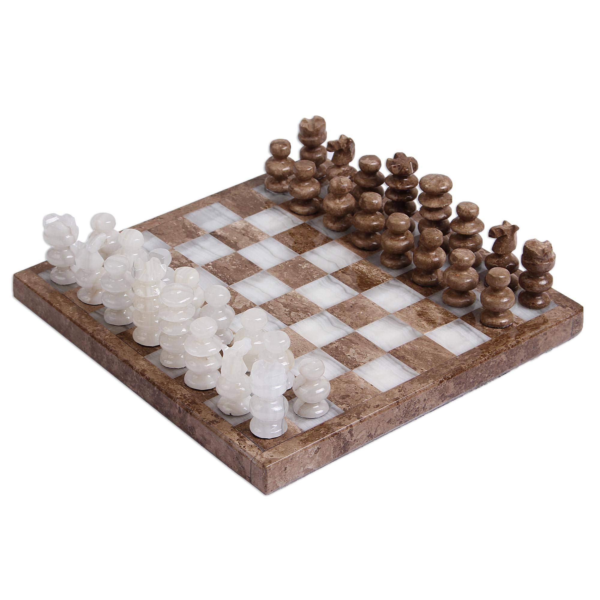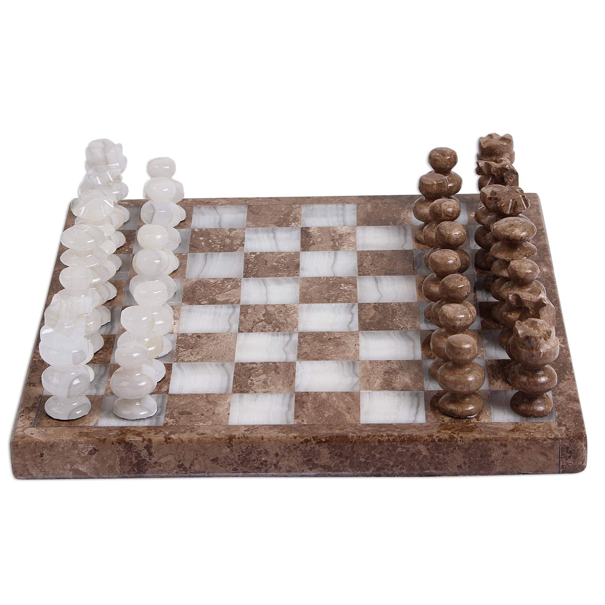 NOVICA Handcrafted Marble and Stone Chess Set, Brown and Ivory, ‘Brown and Ivory Challenge’ (7.5 in.)