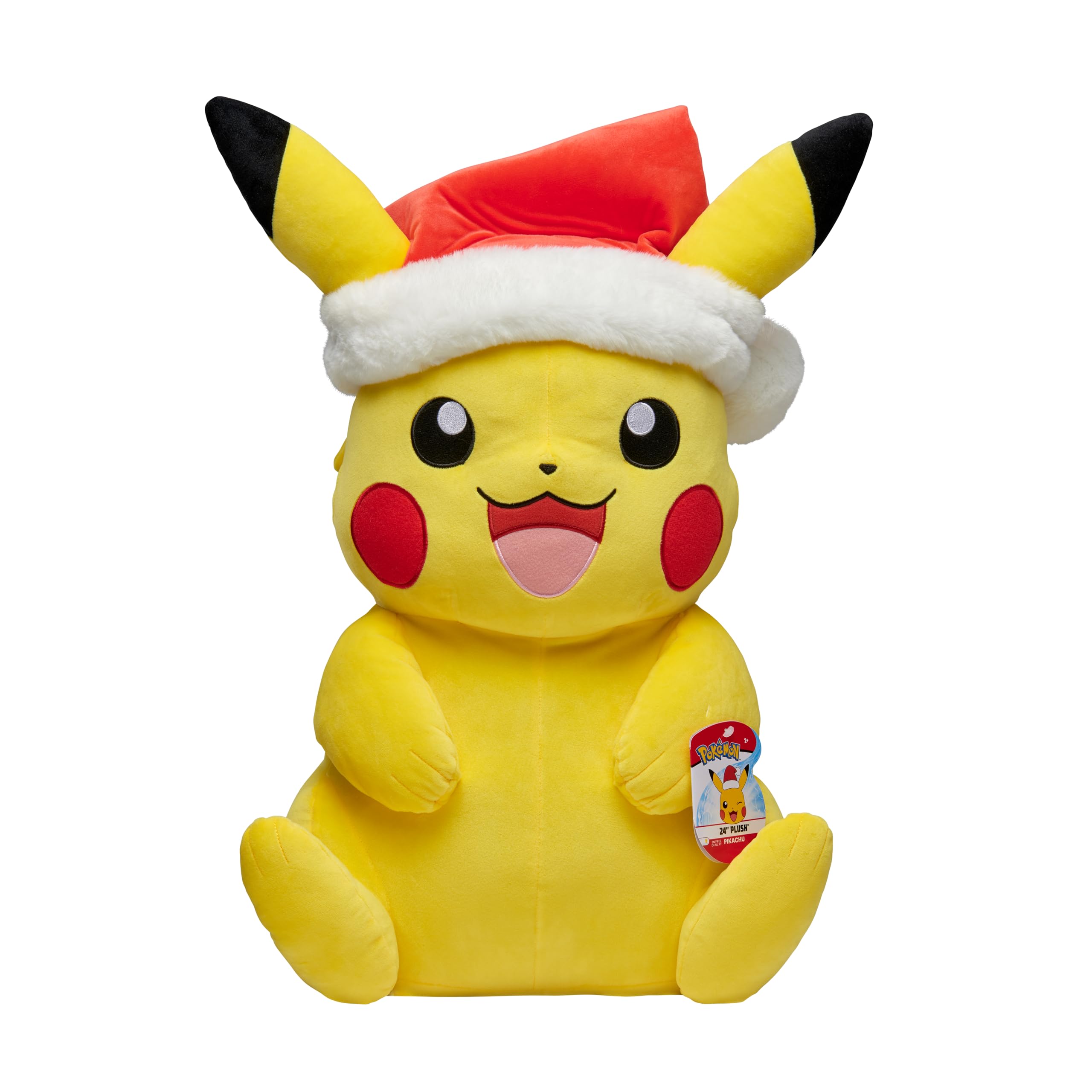 The cute and cuddly 24-inch Seasonal Holiday Pikachu plush is here just in time to celebrate the Holidays! Pikachu is one of the most popular Electric-type Pokémon and now you can take it with you on all of your Holiday themed adventures! With incredible detail and a unique Santa Hat accessory, this Super Sized Seasonal Holiday Pikachu plush is the perfect gift for Pokémon fans of all ages!