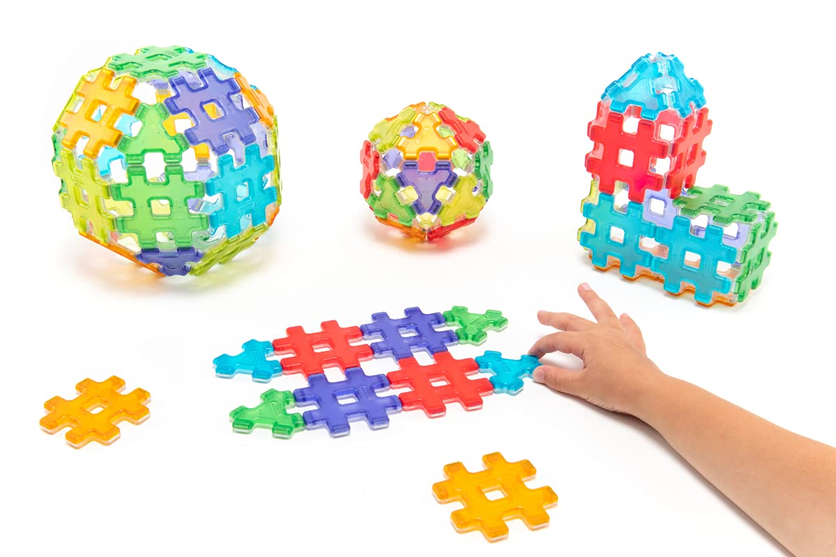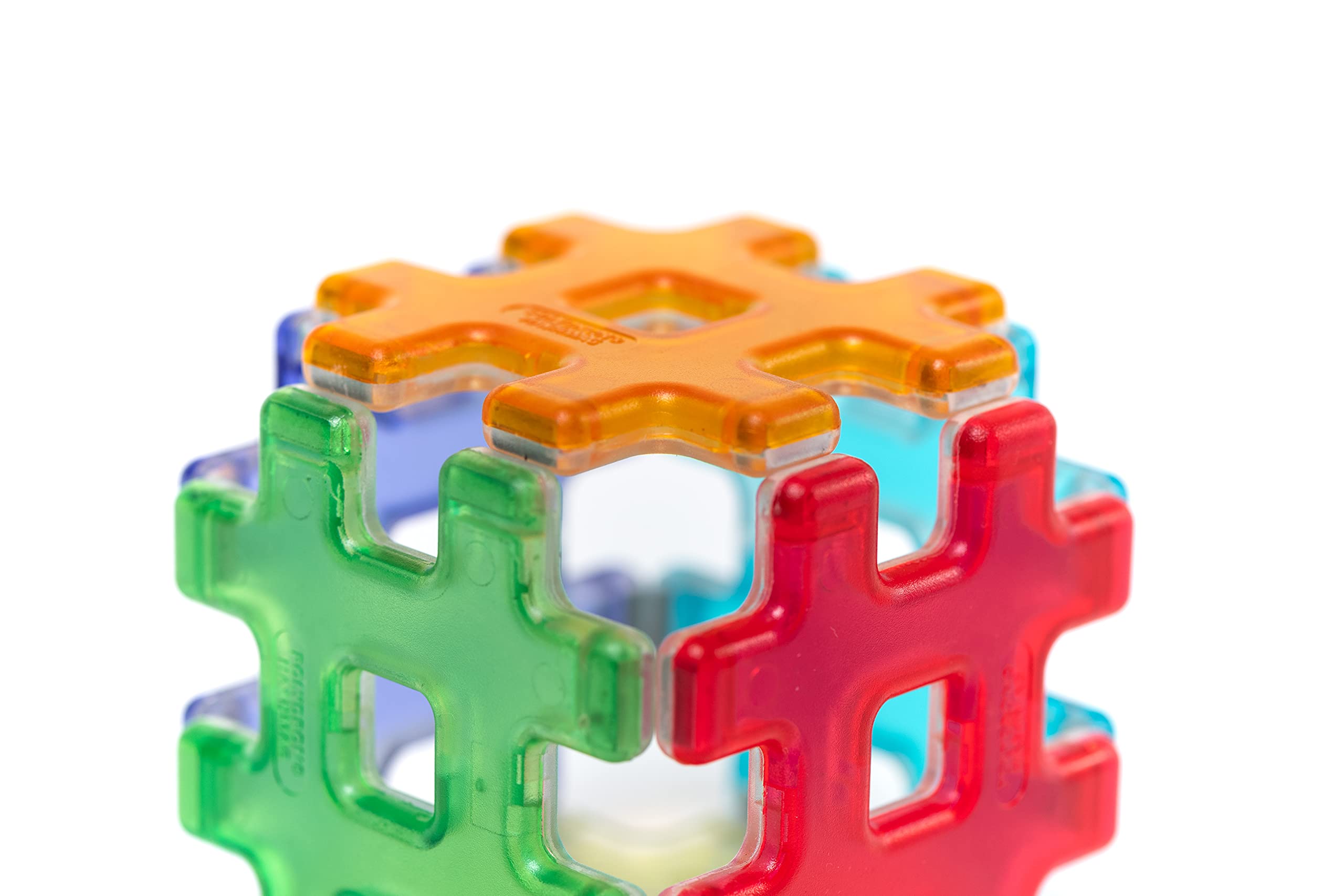 Explore an exciting new method of magnetic construction with HashMag Polydron. The unique shapes, in 6 stunning translucent colors, are ideal for developing fine motor skills and exploring the construction of 2D nets and 3D models. These uniquely shaped pieces will help you to create stunning models that catch the light in new ways. HashMag has a color coding system to help develop an understanding of polarity and is compatible with Magnetic Polydron. Designed for a whole class to use, this 72 Piece Class Set contains 36 triangles and 36 squares. Building guide included for inspiration. Age 3+.