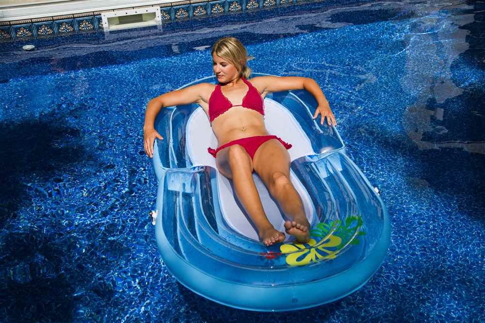 The versatile Tahitian Chaise pool and lake float allows for multiple positions for ultimate comfort. Relax the day away in multiple ways including upright with extra back and neck support or reclined to a water hammock position with extra leg support!