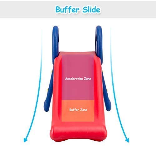 Our folding slide is a great gift for kids. It is made of superior PE material and can support up to 100lbs, which is suitable for children aged 3-6. An ideal present for birthday or Christmas! This wonderful slide is great for children. Kids that often plays slide have good balance, which is the foundation of sports ability. Through climbing, kids exercise the limbs muscles. In the process of playing the slide, kids learn to control their balance and speed, and thus exercise coordination ability. If you are looking for such a slide, please do not hesitate to buy it!