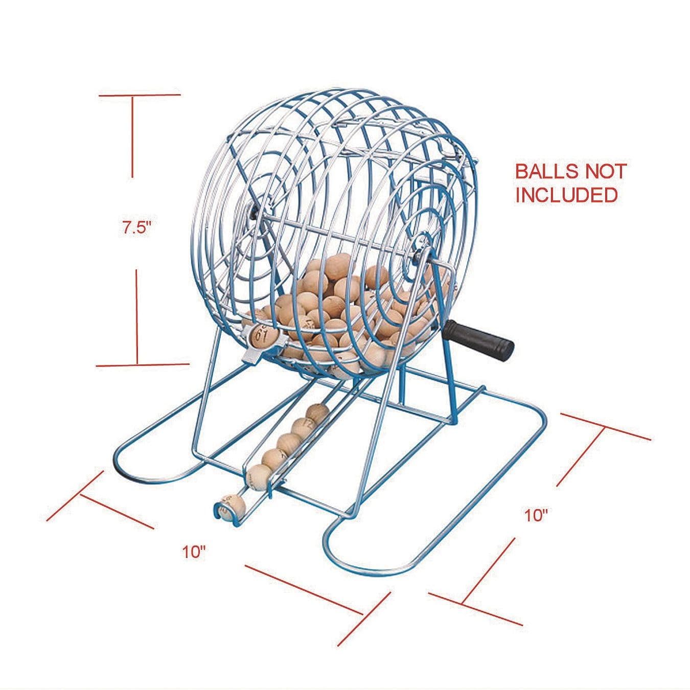 Play bingo like the pros! Our 7-1/2″ rugged metal cage comes with 10″ x 10″ stand, automatic ball selection and drop chute. Handle and ball cup color may vary. This cage works with most bingo balls that are 3/4″ to 7/8″ diameter like our GA2308 and W9509 Bingo Balls. Bingo balls sold separately. Measures approx. 10″ x 10″ with the cage measuring approx. 7-1/2″.